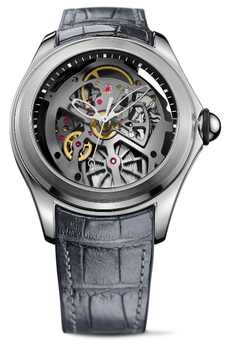 Y ahora, justamente 15 años más tarde, el Bubble regresa triunfalmente como parte de la familia Heritage, consolidando así su posición como pilar fundamental dentro del legado de CORUM. Se presentan tres modelos con proporciones imponentes de 47 mm y 18.8 mm de altura con cristal incluido. Dos de ellos muestran esferas op art y el otro una esfera esqueletada. El trío comparte correas de caucho forradas con piel: cuero para las ediciones op art y piel de cocodrilo para el modelo con la esfera tipo esqueleto.