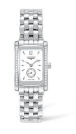 - Este reloj de cuarzo (calibre L178) de acero está engastado con 32 diamantes (0.269 quilate, Top Wesselton VVS), cuyo centelleo realza su forma rectangular de proporciones armoniosas. El cuadrante blanco ostenta diez índices, un número 12 árabe y agujas plateadas que indican las horas y los minutos, así como un pequeño segundero a las seis horas. Un brazalete de acero complementa este modelo contemporáneo y elegante, hermético hasta 3 bar (30 metros).