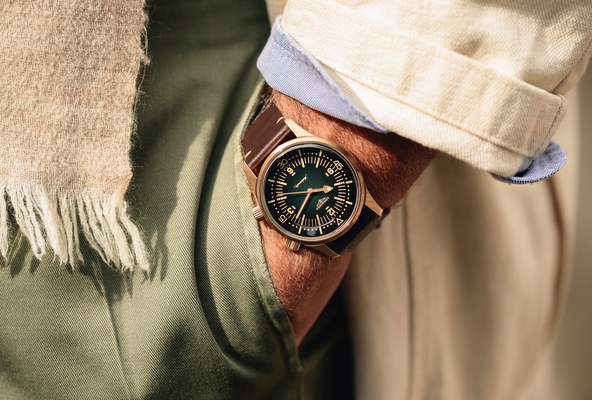 Forma parte de la colección Heritage, por lo que se inspira en uno de los primeros relojes de buceo de Longines. Esta reinterpretación luce un diseño decididamente sesentero, pero cargado de contemporaneidad a partir del nuevo material para la caja: bronce cálido, que se embellece con el tiempo formando una pátina específica que le coloca como pieza única de acuerdo al PH de su propietario.