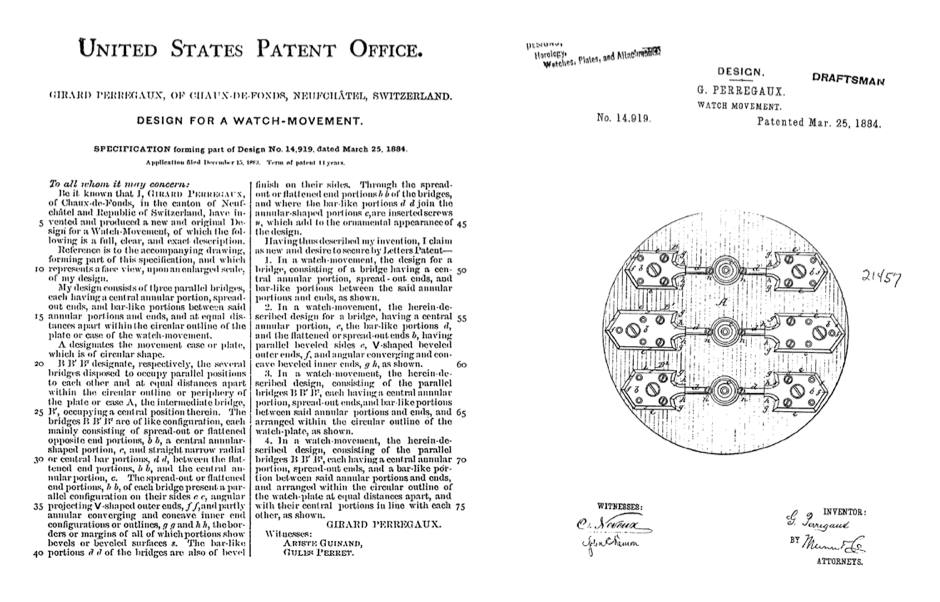 - Patente por el tourbillon de 3 puentes de oro de Girard-Perregaux