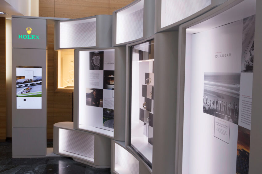 Se trata de un compilado de referencias históricas representativas de esta colección, además de vestir este córner con una serie de pantallas y paneles interactivos que apelan a la historia de este cronógrafo y a las competencias de velocidad llevadas a cabo en Daytona Beach, Florida, en donde Rolex ya figuraba como proveedor de relojería para los aficionados y pilotos de aquella época.