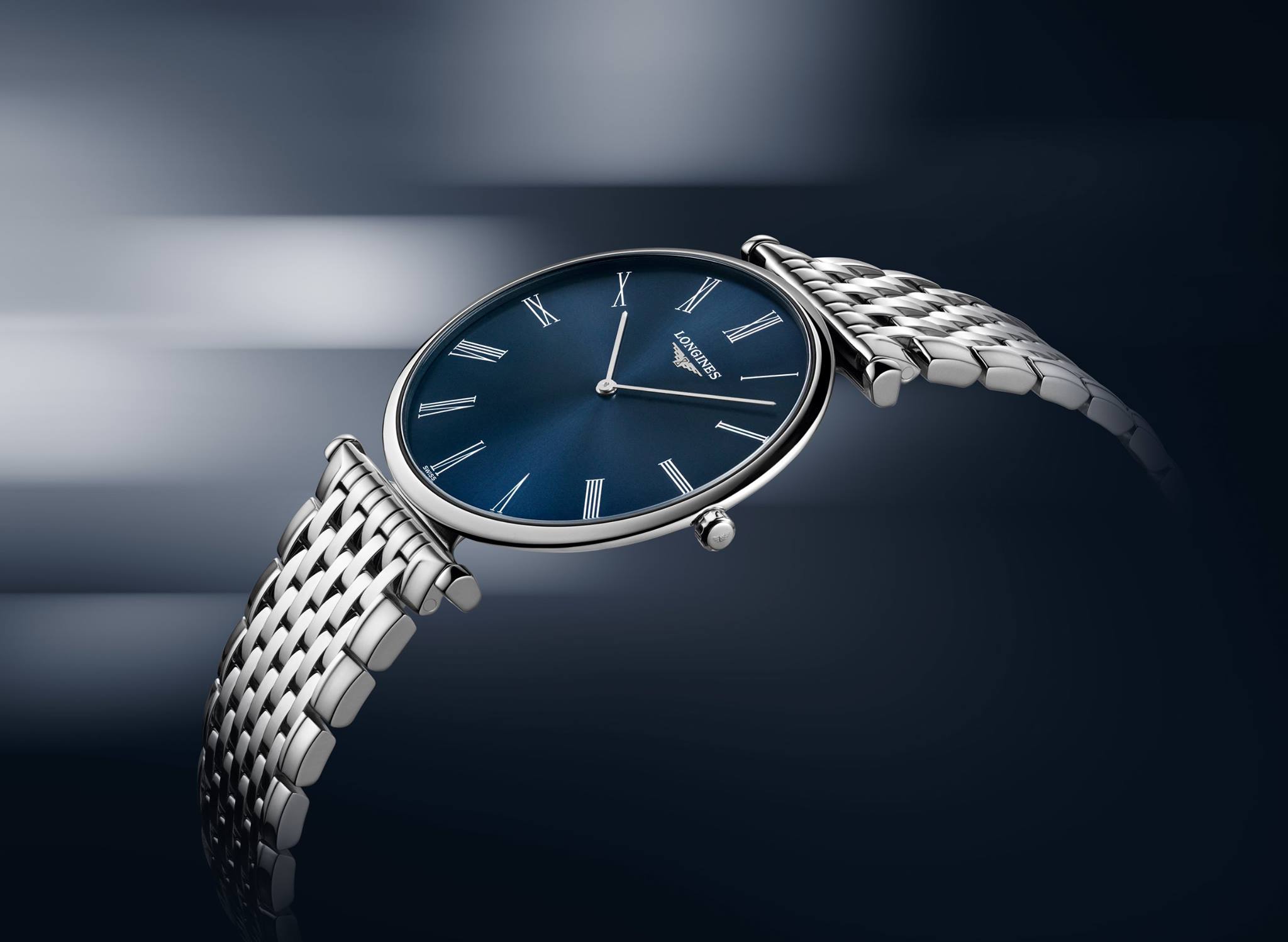 La Grande Classique de Longines se presenta en color azul y en diferentes tamaños, ideales para el hombre y la mujer
