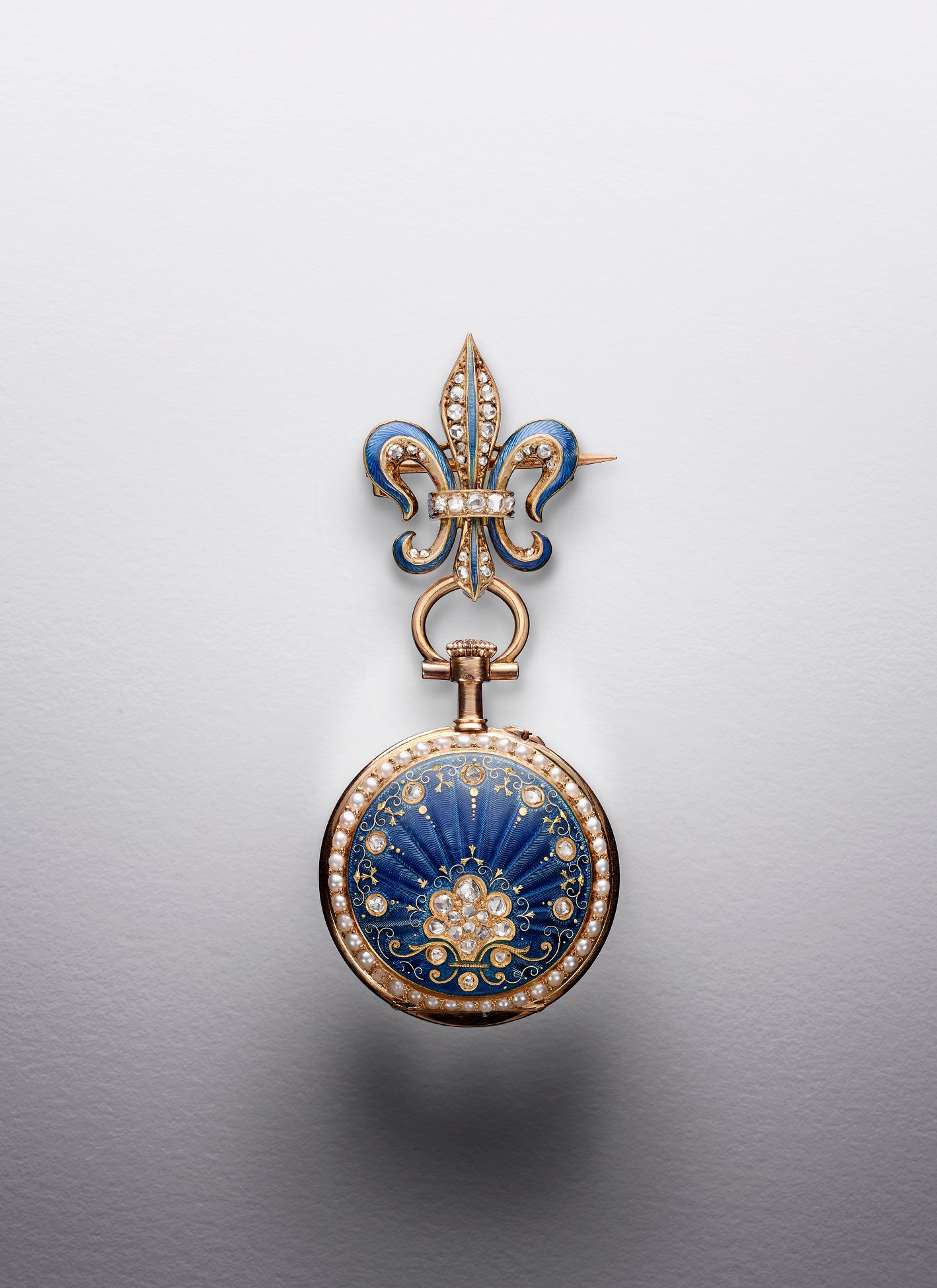 Este reloj para mujeres data de principios del siglo XIX y resume la tendencia estilística de ese período, haciendo una referencia sutil al mundo natural a través de sus elaborados detalles y su colorida decoración de esmalte. Tal fue la reputación de los pintores de esmalte de Ginebra durante este período que maestros relojeros de toda Europa recurrieron a sus talentos, contribuyendo así al desarrollo de un estilo internacional de decoración de cajas de relojes.