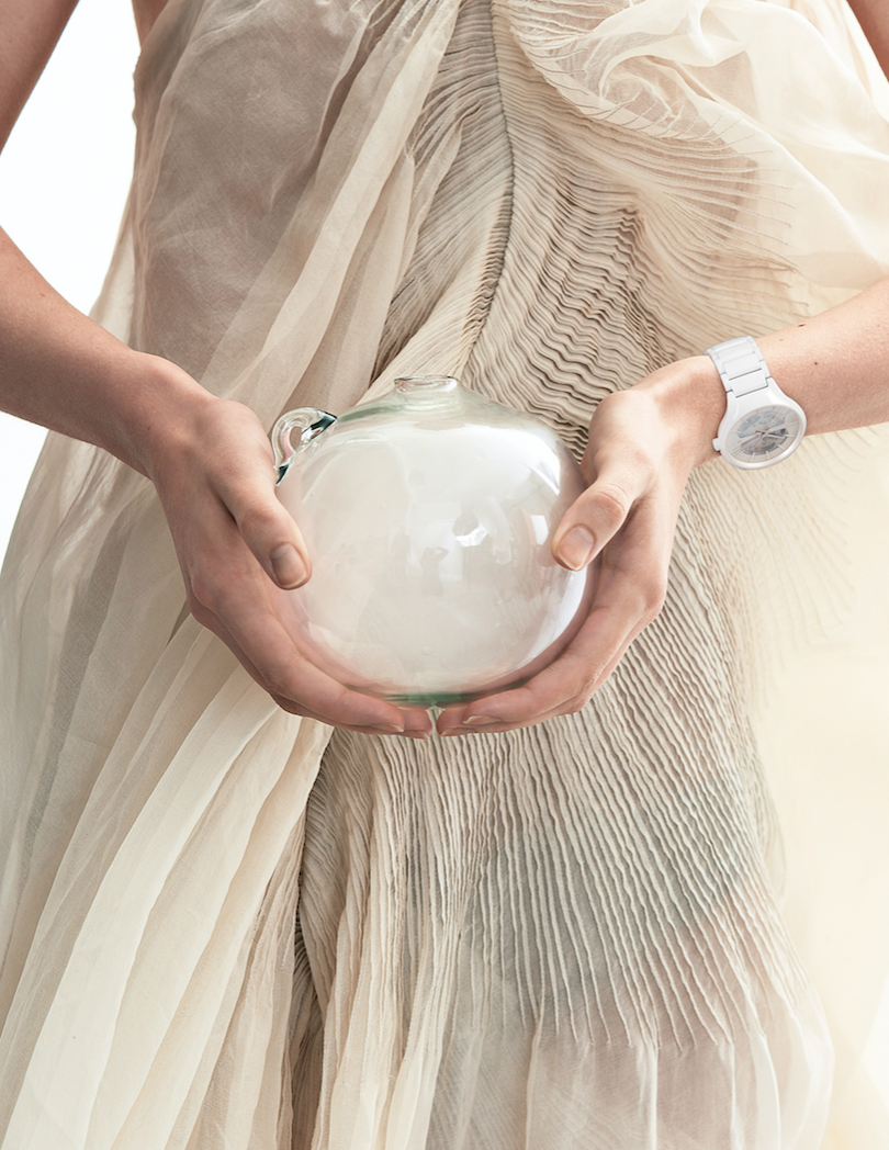 La inspiración de esta referencia está basada en la ligereza, el confort y el lujo. Su delicada y finísima carátula de nácar se transforma de acuerdo a la iluminación y el ángulo de observación. Al usarlo, es posible percibir una sensación de ingravidez parecida a la de una aurora boreal que flota por el espacio. Con su mecanismo desnudo, se hace referencia a la precisión y la belleza.