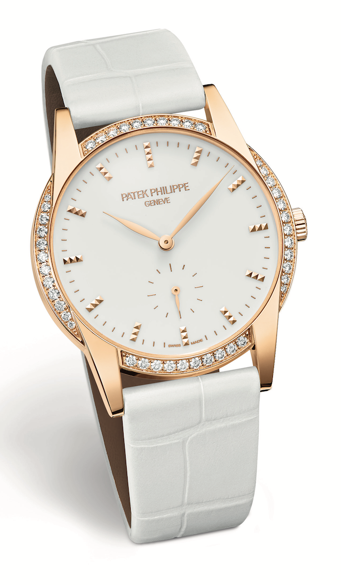 La Ref.7122 de Patek Philippe es una de las creaciones más actuales y puras que ha concebido la Casa relojera. Ellos mismos denominan a esta pieza como “el blanco de blancos” de la elegancia femenina. Es perfecto para combinarlo con un gran número de atuendos, ya que, por su color blanco y engaste de diamantes va perfecto tanto para usarlo en el día como durante la noche.