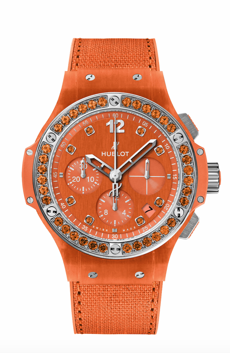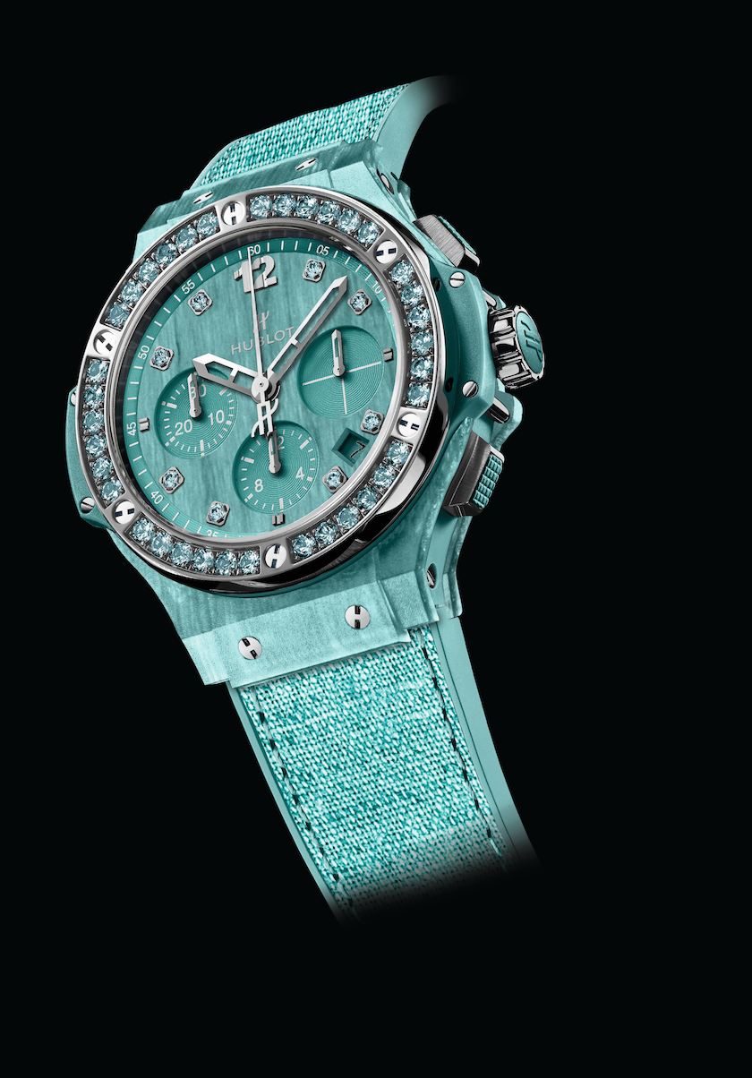 El Big Bang Tutti Frutti de Hublot, es el indicado para toda aquella mujer que ama la naturaleza y que se inclina por estilos frescos y elegantes. En esta ocasión, la casa relojera se viste de encajes y tejidos tejanos elaborados con materiales a base de fibra vegetal natural para concebir este modelo. La colección es presentada en cuatro colores vibrantes: Ocean Blue, Turquoise, Purple y Orange.