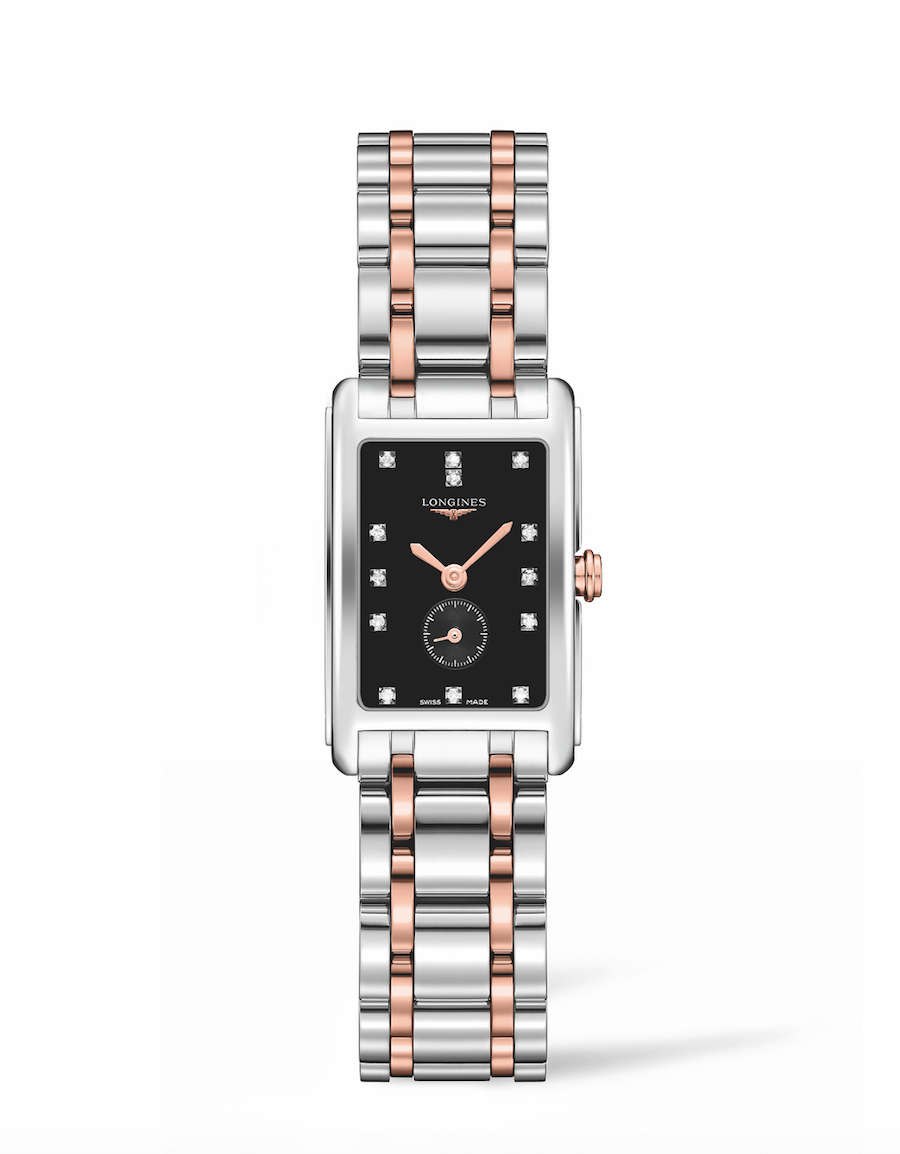 La manufactura Longines se inspira en una mujer dulce y tierna para crear su colección DolceVita. Este modelo se caracteriza por su carátula negra con acabado lacado, embellecido por una mezcla de oro rosa y acero. La Casa relojera ofrece la mejor opción para complementar una “dulce vida”.