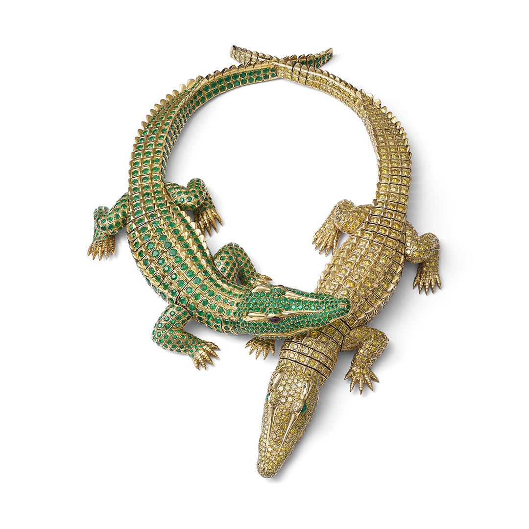 Y a partir de entonces se creó una de las joyas más famosas del mundo. El collar de dos lagartos hecho con 1023 diamantes, 1066 esmeraldas y los ojos de uno de los dos cocodrilos en rubíes.
