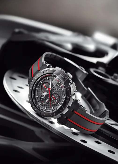 Esta es una pieza que sin duda reafirma el espíritu deportivo por el que se rige Tissot. Luce unas llamativas rayas GT rojas y negras, estéticas y fácilmente reconocibles, complementan el novedoso diseño de la caja y los nuevos pulsadores con forma de pedal.