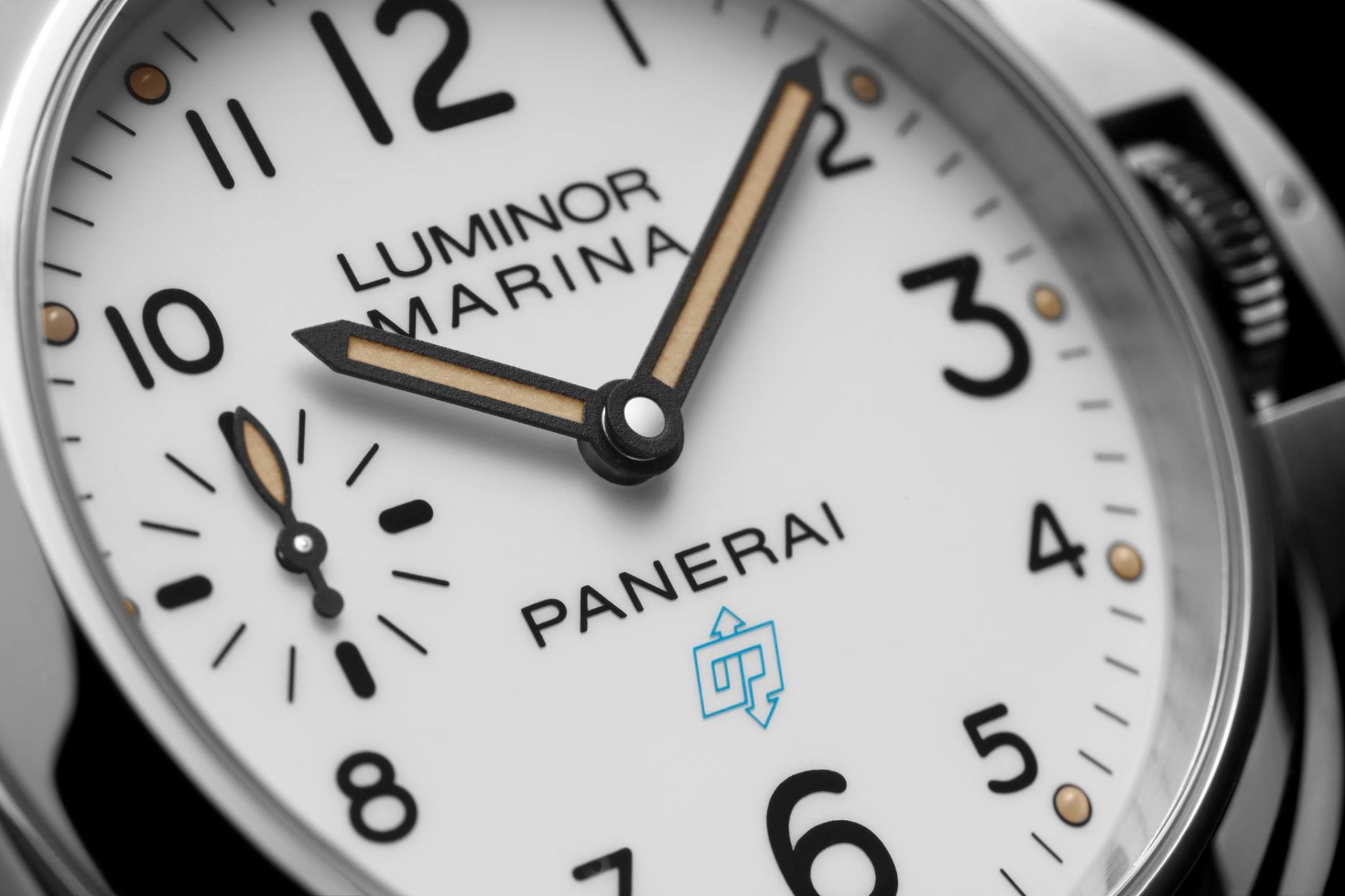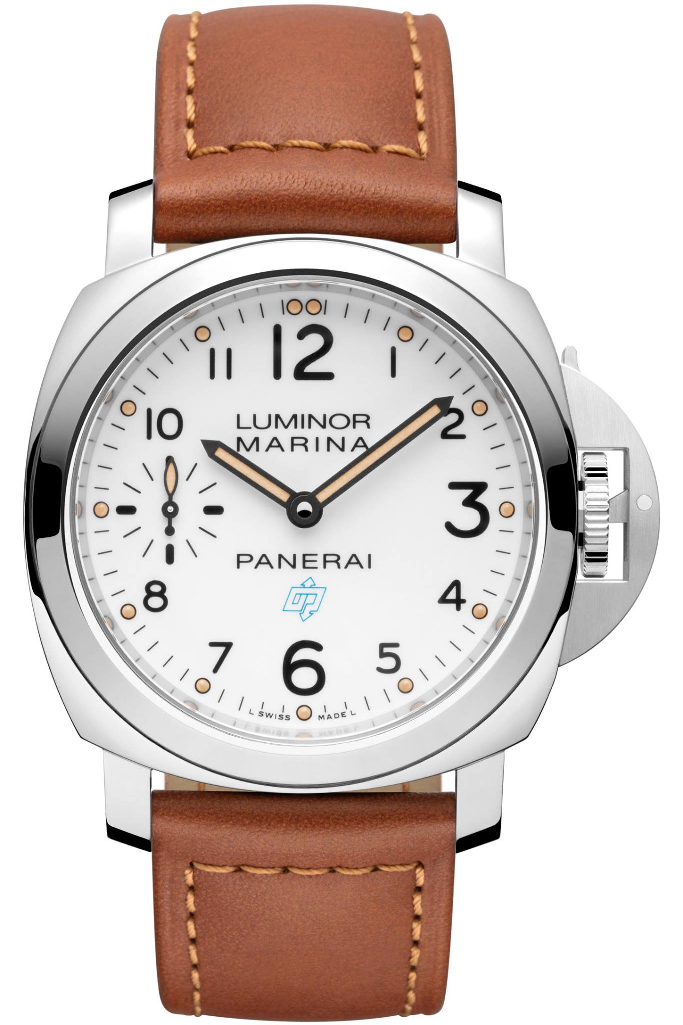 La carátula de todos los nuevos modelos incorpora el clásico diseño Panerai, de extraordinaria legibilidad tanto de día como en la oscuridad, y está disponible en colores blanco o negro, con el logotipo OP a las 6 horas en azul o blanco. Dicho logotipo, formado por las letras O y P entrelazadas