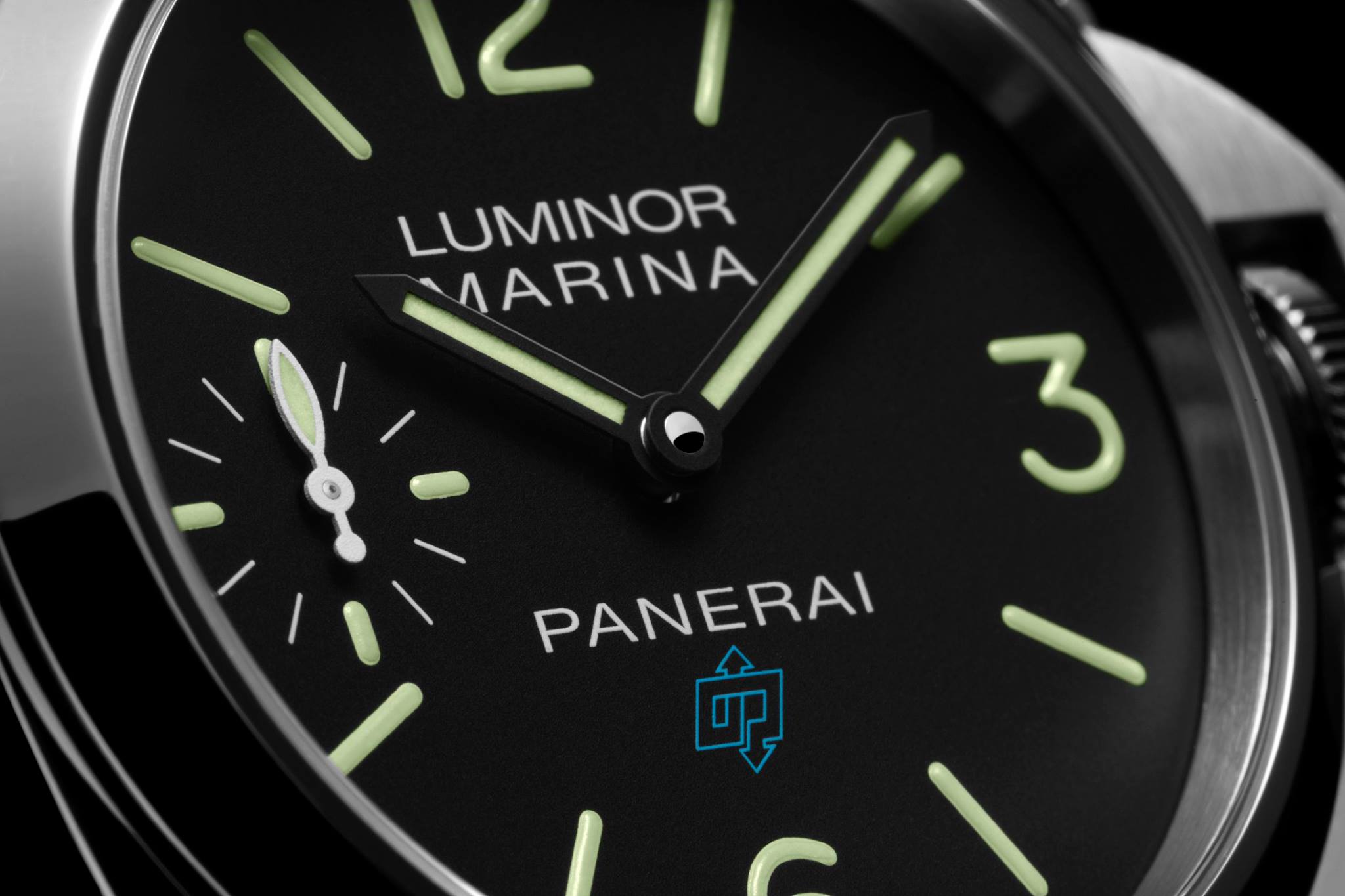 Con dos flechas dirigidas hacia arriba y hacia abajo, simboliza las dos vocaciones históricas de Panerai. A comienzos del siglo XX, el taller florentino de Panerai empezó a fabricar instrumentos ópticos y de precisión para la Real Armada Italiana, no solo para operaciones subacuáticas, sino también para la observación del firmamento. La combinación del mar y el cielo forma parte de la historia de la marca, como recuerda el nombre Radiomir, el primer reloj militar para submarinismo de la historia fabricado por Panerai para la Armada en 1936, que ha ido evolucionando a lo largo de los años hasta convertirse en el actual Luminor. El nombre Radiomir se refería originalmente a la sustancia luminiscente a base de radio que Panerai patentó en 1916 para la fabricación de las esferas luminosas de los instrumentos de localización del blanco y las miras de los binoculares.