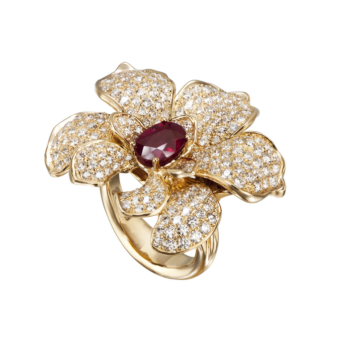 Uno de los motivos florales más presentes en los Mantones de Manila, protagonistas de la línea de Alta Joyería de Seda Imperial 2014 de Carrera y Carrera, es la orquídea.