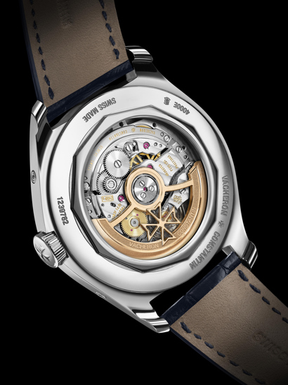 El bisel hexagonal que evoca el famoso emblema de Vacheron Constantin, la Cruz de Malta; una carátula lacada translúcida con agujas e índices horarios de oro, facetados y luminiscentes; movimientos de manufactura diseñados para facilitar el uso cotidiano.