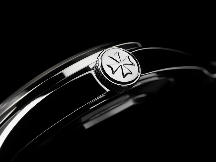 Este reloj ha sido dotado de un movimiento de carga automática, y muestra la fecha, el día y el mes, así como una indicación de fase lunar de precisión que ofrece 122 años de exactitud. El calibre 2460 también ofrece un sistema de secuestro de segundos. La carátula de tipo sector compone una carátula extraordinariamente legible, acentuada con un anillo horario con numerales arábigos. La cruz de Malta también aparece sutilmente en la corona integrada y en la carátula y con una mayor discreción en el diseño de las asas de la caja.