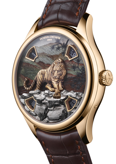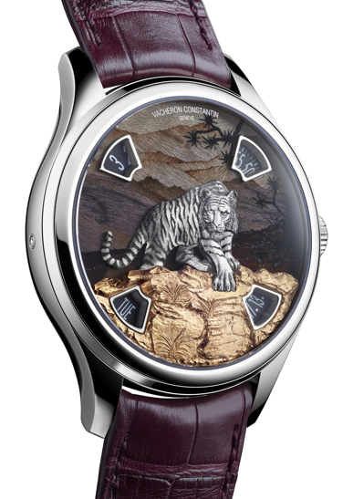 Este año la Casa incorpora nuevas obras maestras al universo “Mécaniques Sauvages”, estas creaciones recrean el hábitat perfecto para tigres y pandas, dejando al descubierto el magistral dominio en el campo de la relojería y de las artes decorativas que distingue a la marca. Estos modelos son la más reciente encarnación de esta tradición. Gracias a la indicación descentrada de la hora y la fecha del calibre 2460 GA, se crea un amplio espacio en el centro de la carátula para que tigres y pandas se aprecien en todo su esplendor a través de un conjunto de relieves ornamentales en ramolayé y marquetería de madera.