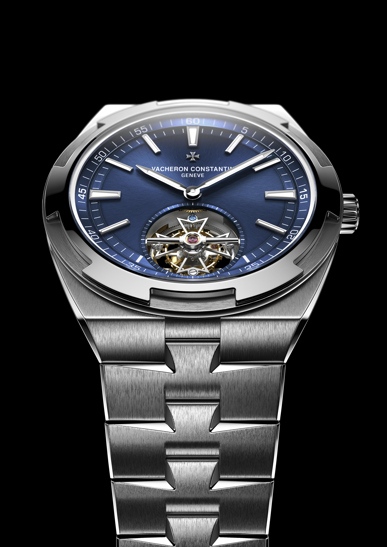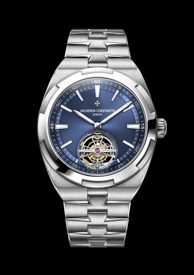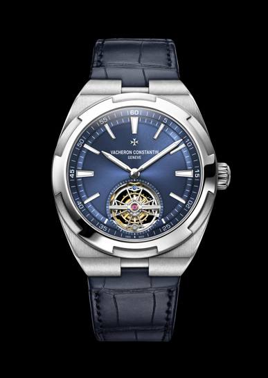 El calibre ultraplano 2160, presentado por primera vez en 2018 y que tiene un grosor de solo 5.65 mm tiene un rotor periférico de oro de 22 quilates. El nuevo Overseas Tourbillon ofrece las funciones de horas y minutos centrales y tourbillon con indicación de segundos a las seis, mostradas en una carátula lacada en azul, con acabado satinado con efecto de rayos de sol,acentuada por agujas e índices horarios con tratamiento de Super-Luminova.
