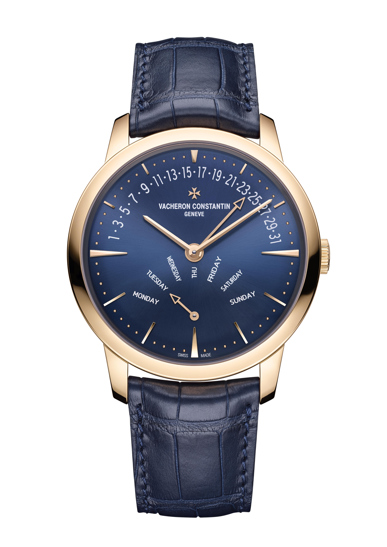 Sin duda una bella interpretación llena de matices la que este año enriquece a la colección Patrimony. Se trata de un reloj aparentemente clásico y sumamente complejo, que ofrece un refinamiento sin igual, orientado a los más expertos y exigentes conocedores. Se presenta en un inédito color “azul majestuoso”. Cuenta con una referencia clásica con hora y minutos, otro modelo de carga automática, horas, minutos, segundos y fecha y uno más con día de la semana y fecha retrógrados.