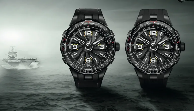 Perrelet lanza la colección Turbine Pilot, un homenaje al mundo de la aviación que, al igual que el de la alta relojería, aúna técnica y pasión, precisión y audacia. Turbine Pilot de Perrelet, asocia el concepto de la turbina al de la regla de cálculo circular de aviación: una nueva proeza técnica y de estilo para un reloj de aviador realmente único. El movimiento mecánico de cuerda automática del calibre P-331 que late en el corazón de estas creaciones se ha concebido y realizado íntegramente de manera interna en los talleres de producción de la marca. Los distintos modelos de la colección certifican su carácter único, asociando potencia y elegancia. Las cajas de acero ofrecen volúmenes generosos de 48 mm de diámetro y lucen las ranuras distintivas de la marca.