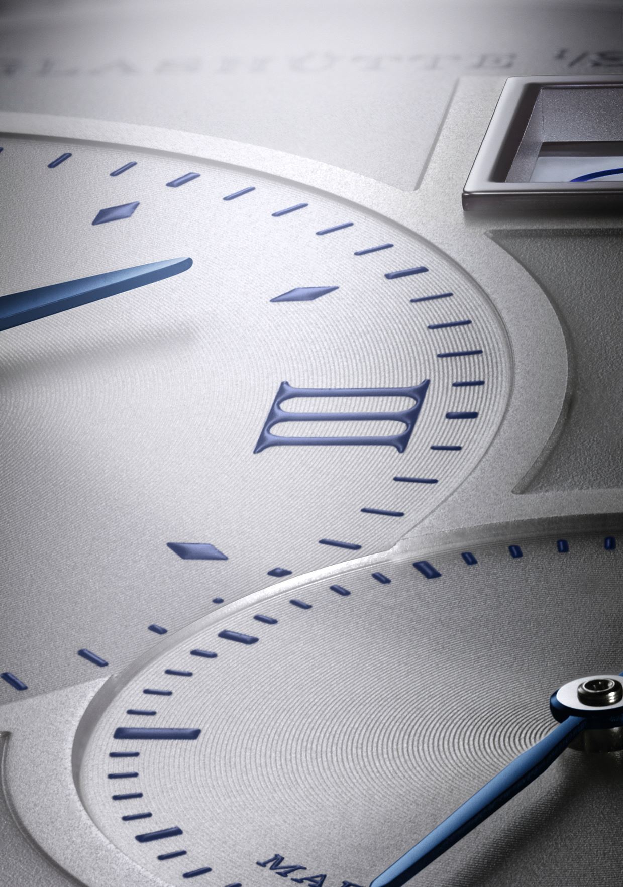 Sus particularidades ofrecían una división creativa y extraordinaria de la lectura de las horas y minutos mediante una subcarátula descentrada, la gran fecha digital a la altura de la 1 y un pequeño segundero por aguja situado a las 5 horas. Finalmente, la reserva de marcha se exhibe en la periferia del dial, logrando una armonía extraordinaria y una lectura inmejorable.