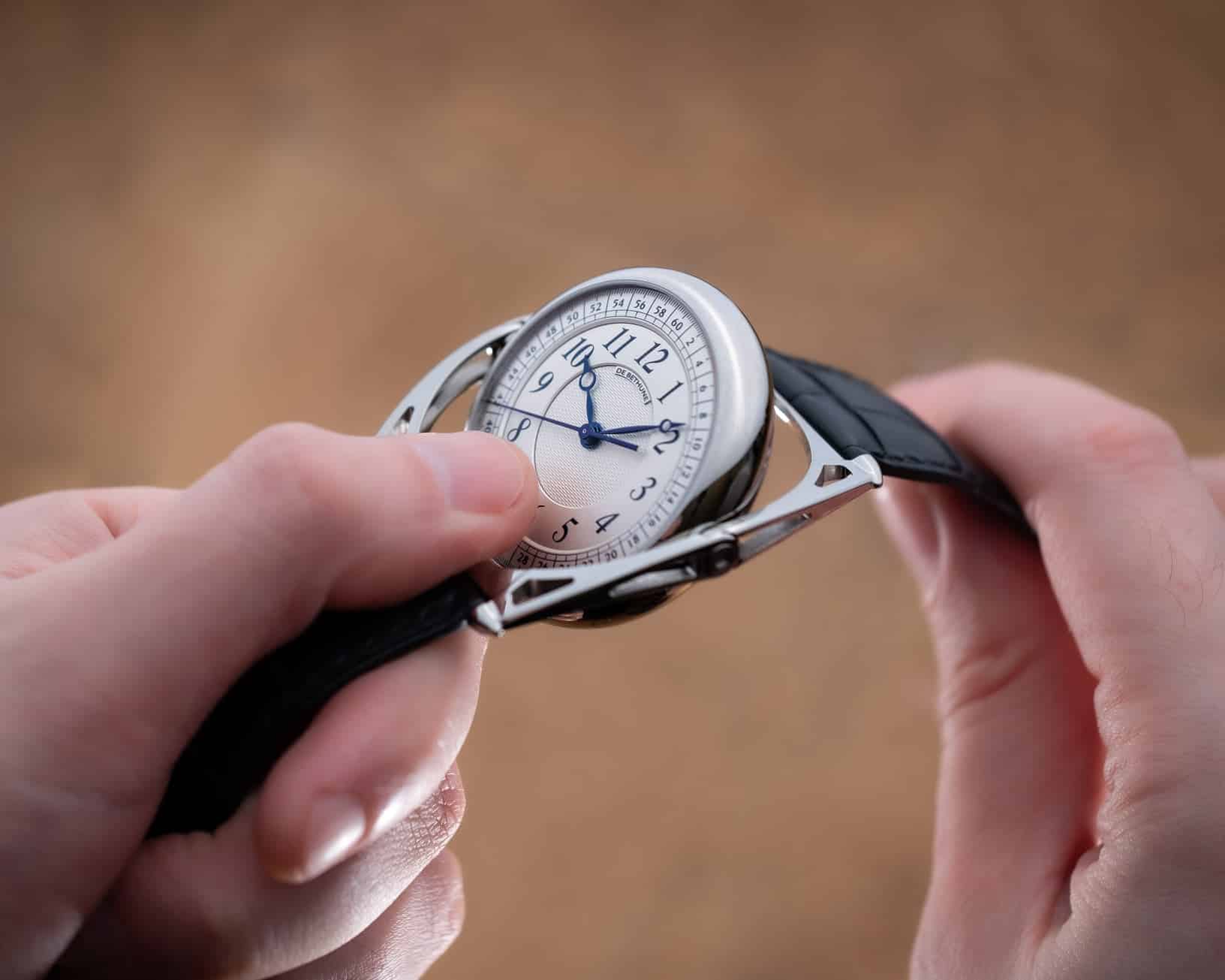 Detrás de una ejecución mecánica también existe una razón poética, y dependiendo del estado de ánimo el reloj se puede voltear para mostrar una carátula o la otra.