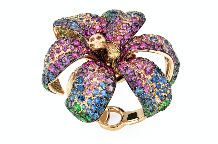 Esta línea de Alta Joyería está compuesta por piedras preciosas, sutiles flores, pictóricos diseños y atrevidas formas tanto en los colgantes como en los pendientes y anillos de la colección. Sus motivos florales adquieren un nuevo atractivo gracias a la combinación de nácar, diamantes y gemas en colores como blancos y azules. Muchas de estas creaciones presentan además pequeños cráneos dorados.