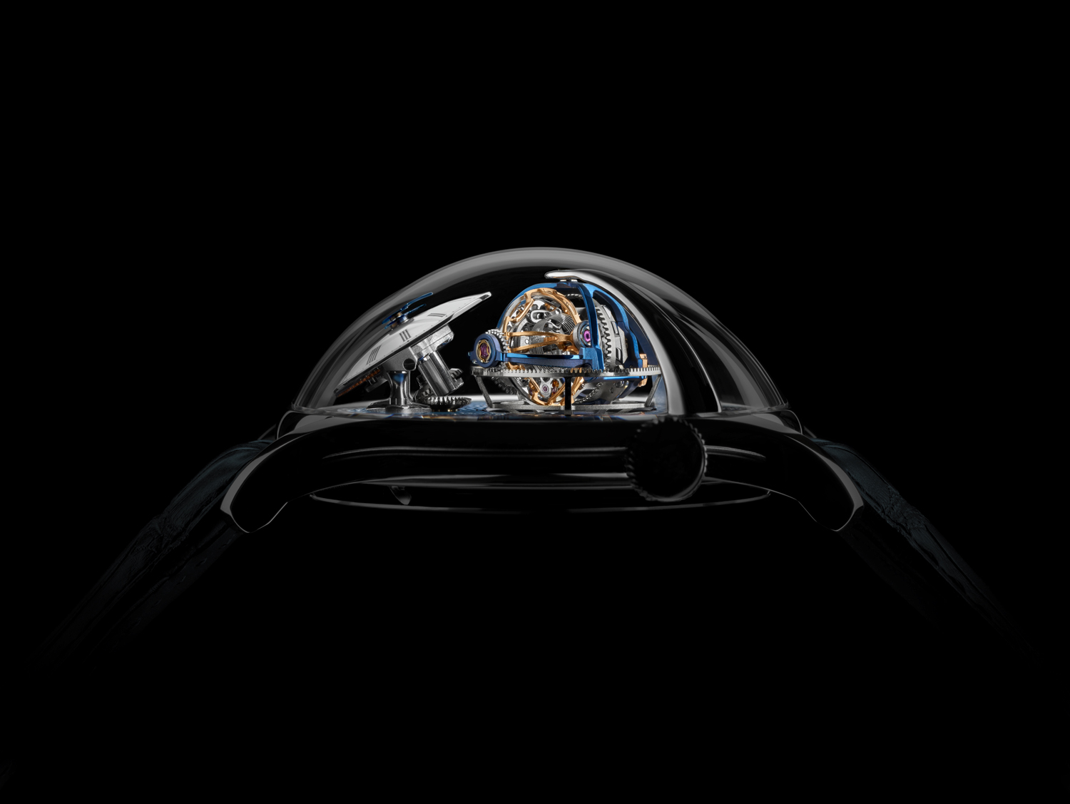 Se presenta un nuevo mecanismo de tourbillon triaxial con velocidades récord dentro de la industria relojera. Además de combinar un escape Potter con un volante semiesférico y una espiral helicoidal.