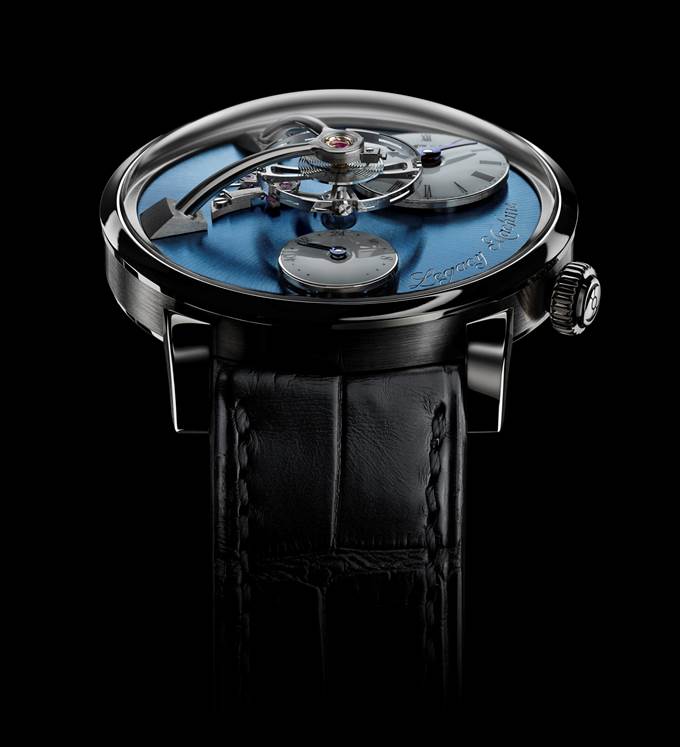 El reloj se extiende con majestuosidad y carácter a lo ancho de 40 mm, mientras que la carátula, concebida por Maurizio Cervellieri / Natéber, se presenta en azul, como en cada pieza de platino en MB&F. El movimiento proveerá de energía suficiente para la indicación de las horas, minutos y reserva de marcha, la cual está garantizada hasta 45 h con toda la cuerda dada.