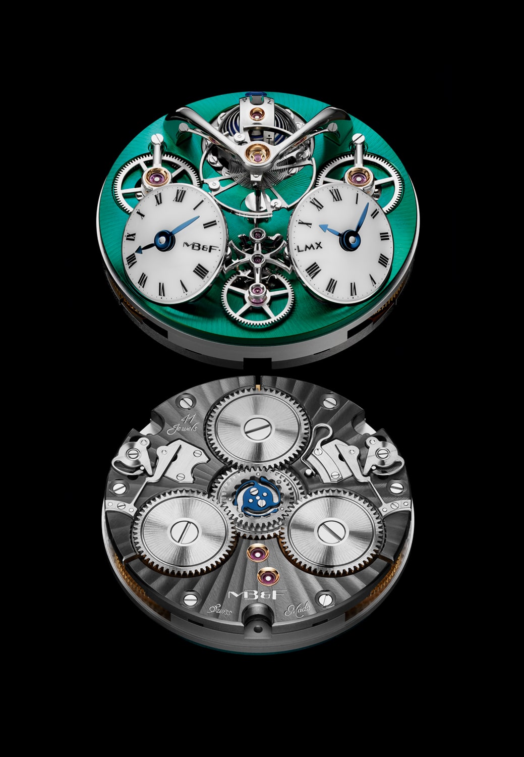 - Calibre: desarrollado para MB&F; Simon Brette /MB&F (piñones y ejes Chronode; platinas y puentes Amecap y Horlofab; volante Atokalpa; grabado a mano Glypto y acabados Jacques-Adrien Rochat y Denis Garcia; espiral con curva Breguet