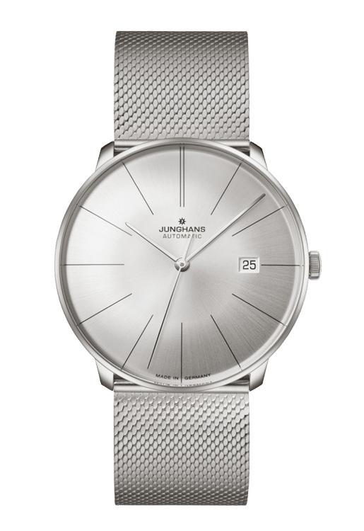 Esta referencia ha sido dotada con el movimiento multifrecuencia radiocontrolado J101.66, visualización de la hora exacta en movimientos de medio segundo a través de SHM (Smart Hand Motion). Configuración de la hora inteligente a través de la aplicación Junghans MEGA -Configuración de la zona horaria precisa al segundo, visualización de la fecha con calendario perpetuo (también en modo cuarzo). Caja de acero inoxidable con revestimiento PVD antracita pulido de 38 mm.