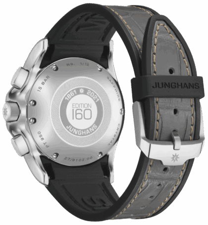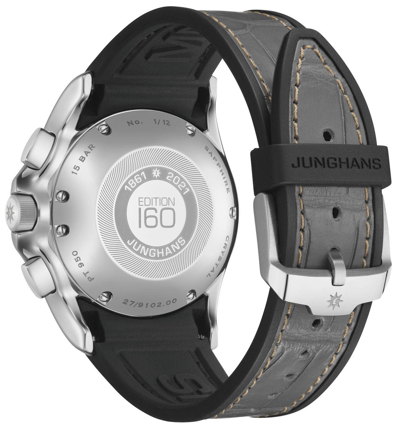 Su movimiento automático J880.1 tiene reserva de marcha de hasta 48 horas, muestra fecha y día de la semana a las 3 horas. Su caja de 45 mm de diámetro está elaborada en platino PT950 pulido. En el fondo de caja se muestra grabado del logotipo de la Edición 160.