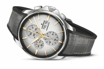 Se presenta en tres diferentes versiones, la primera con carátula plateada con cepillado rayos de sol y brazalete de acero inoxidable milanaise; la segunda con carátula plateada mate y correa de piel, mientras que la tercera versión se presenta en negro galvánico y cepillado rayos de sol con correa de piel.