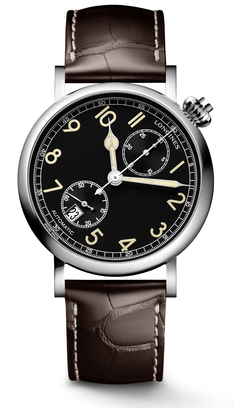 Longines Avigation Watch Type A-7 1935 se presenta como una reinvención del Avigation original destinado al ejército del aire norteamericano en 1935. Cuenta con una carátula negra desplazada para poder ser vista con facilidad sin tener que retirar la muñeca del timón de vuelo.