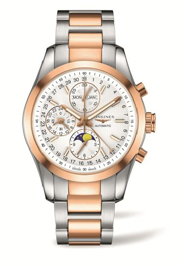 - CLASSIC CONQUEST MOONPHASE de acero y chapa oro rosa de 18 quilates.