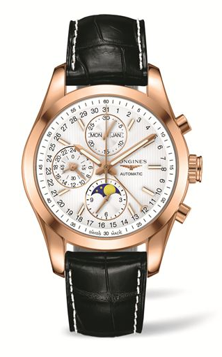 Hablando un poco de la historia del Conquest Classic, Longines registró la marca “Conquest” el 25 de mayo de 1954, y desde entonces se le asocia a la marca como un sinónimo de calidad, elegancia y altas prestaciones. En el caso específico del Conquest Classic Moonphase, el movimiento automático L678, basado en el Valjoux 7751 anima a cada una de las indicaciones latiendo a una frecuencia de 4 Hz durante, no menos, de 48 horas, mientras que será albergado en cajas de acero y acero chapado oro rosa de 18 quilates según la configuración de su elección, y abrazado a la muñeca mediante correas de piel de aligátor color negro, brazalete de acero y acero oro rosa de 18 quilates con triple cierre desplegable de seguridad. Finalmente destacamos la carátula de la pieza, que se encuentra disponible en color negro o plateado con índices aplicados y tratamiento Super-LuminNova®, garantizando con ello la visibilidad de sus funciones sin importar las condiciones de luz.