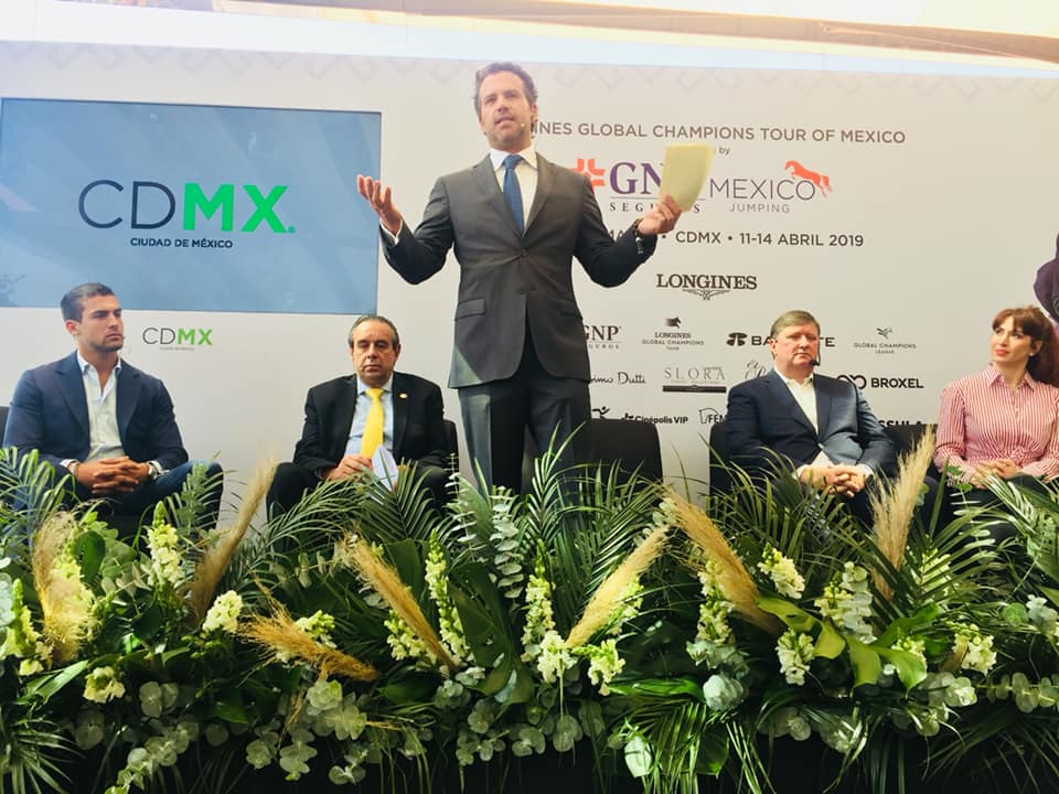 Con gran orgullo, pasión y determinación, Francisco Pasquel, Presidente del Longines Consejo Global Champions Tour en compañía de Paola Félix Díaz, Directora General del Fondo Mixto de Promoción Turística en México y Eduardo Silva Director General de Grupo Profuturo dieron la bienvenida oficial a toda la población en sumarse al Longines Global Champions Tour of Mexico que se llevará a cabo del 11 al 14 de abril del 2019 en Campo Marte.