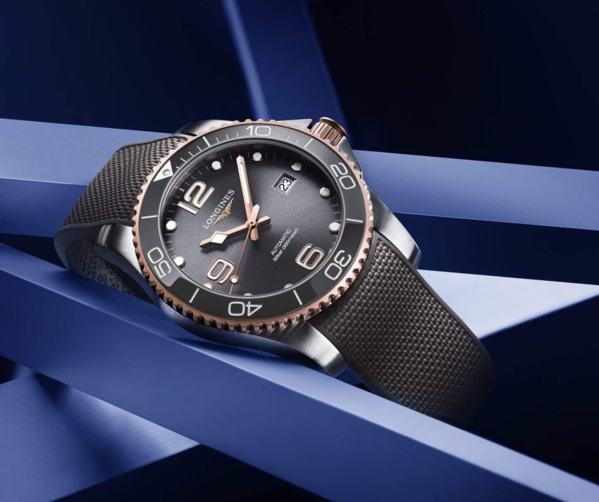 La colección HydroConquest se hace con los tonos PVD amarillo o rosa para completar las versiones de esta línea emblemática de Longines. Recuperados en 2018, los modelos de esta gama presentan las características estéticas y funcionales de los relojes de buceo y responden a las expectativas de los amantes del buceo, la inmersión y actividades acuáticas. Si bien ya están disponibles en azul, gris, negro o verde, estos relojes de diseño depurado presentan un bisel realzado con un inserto de cerámica a juego con el color de la carátula.