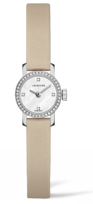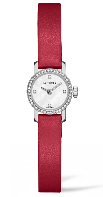 Asimismo, los colores del strap, fabricado en piel de becerro, replicarán la personalidad de cada señorita que opte por vestir su muñeca con esta sutil referencia de Longines: beige, lavanda, negro o rojo, cada uno de los cuatro modelos está animado por el calibre de cuarzo L298.2 para la muestra de horas y minutos por aguja sobre una carátula de nácar blanco.