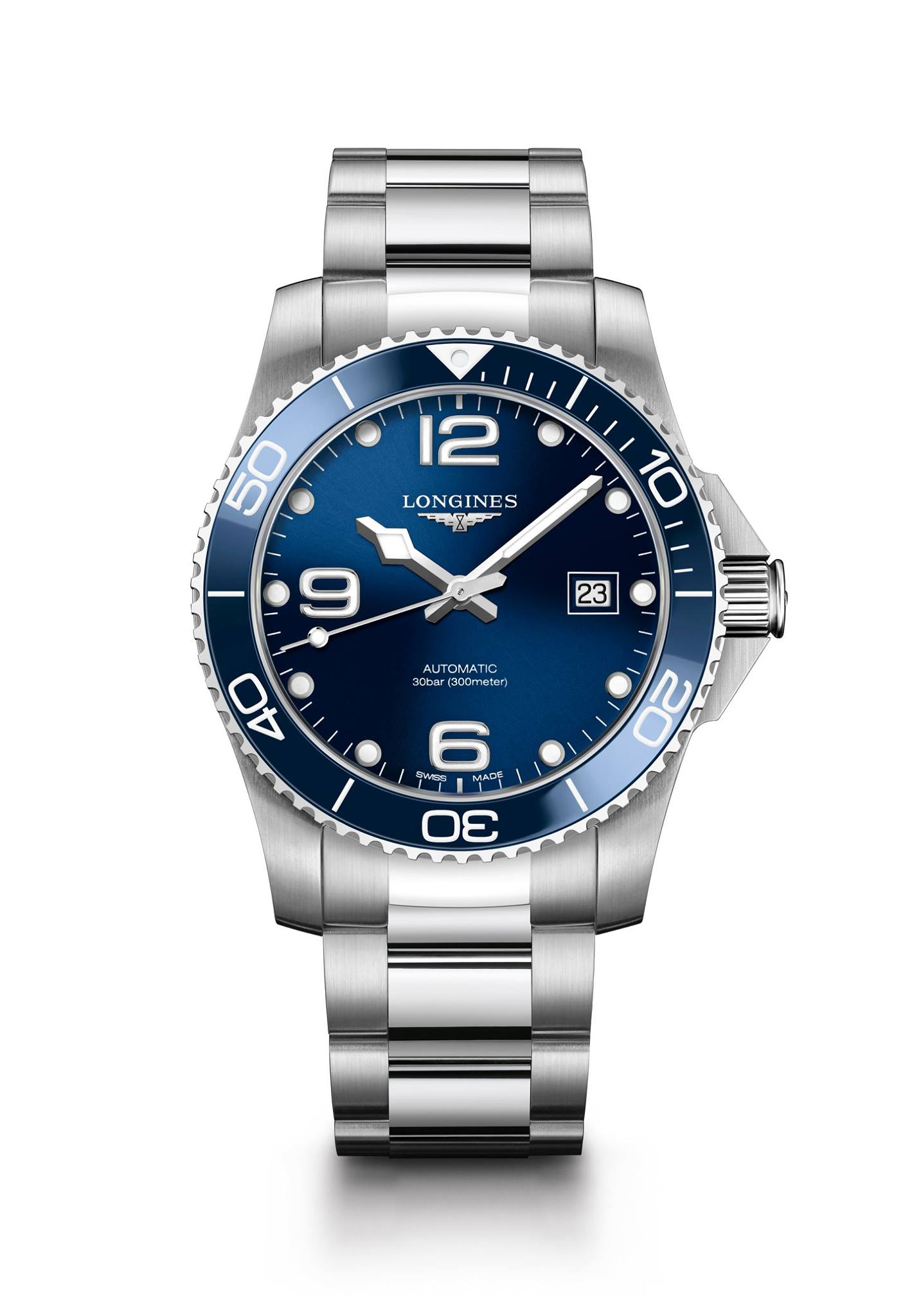 Disponibles en tamaños de 41 mm y 43 mm para los modelos con tres agujas / calendario y de 41 mm para el cronógrafo, las nuevas variaciones de la colección HydroConquest se llevarán en las muñecas de los aficionados a los deportes acuáticos que saben combinar rendimiento y elegancia.