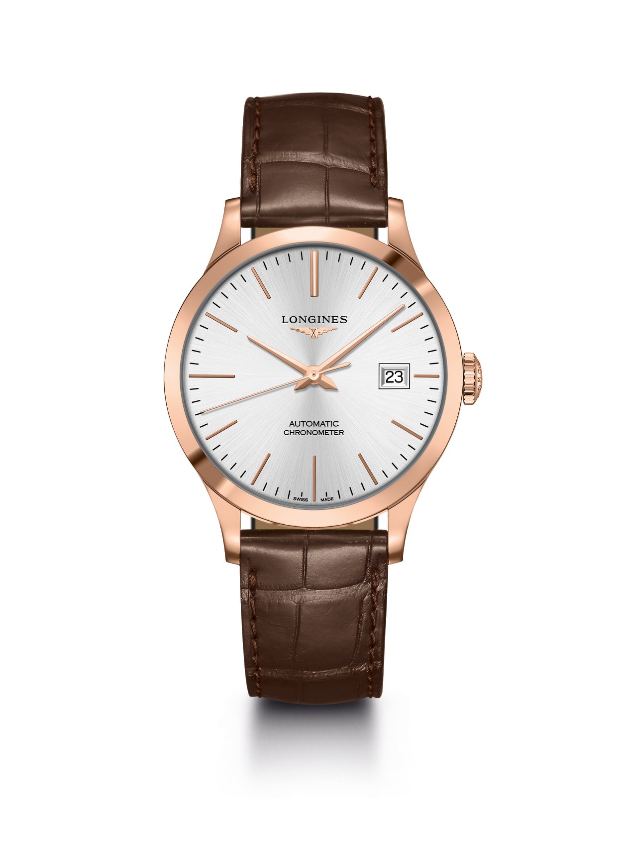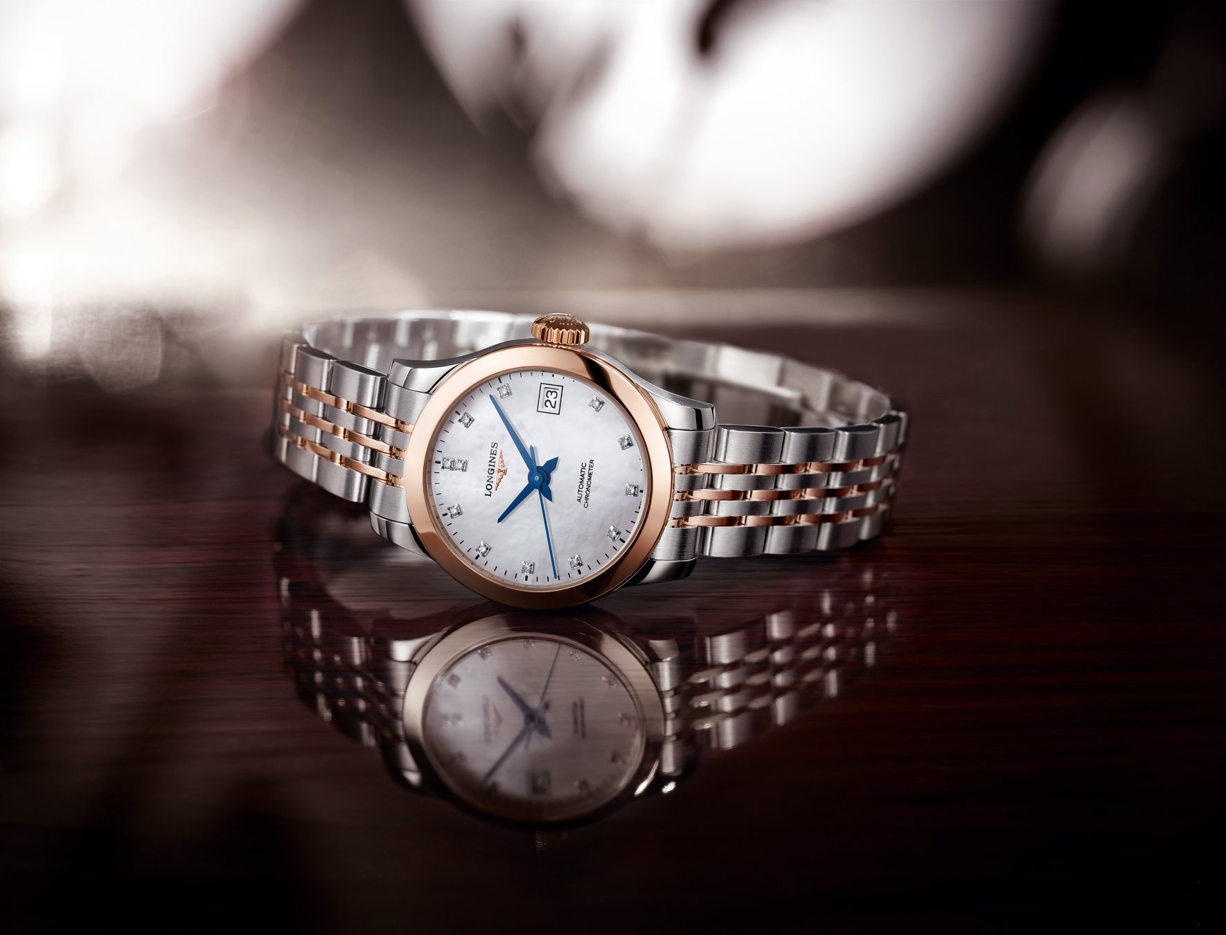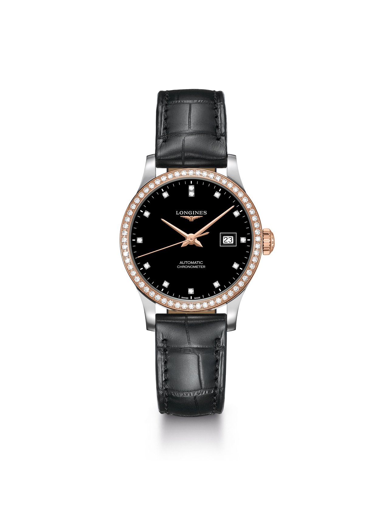 Longines presenta variaciones de oro rosa o de acero y oro rosa, siempre complementadas con un certificado de cronómetro expedido por el Control Oficial Suizo de Cronometría (COSC). A través de su colección Record, Longines expresa su propia esencia, aunando elegancia atemporal y excelencia, para elevar estos modelos al rango de futura línea estrella de la marca, en forma de enlace entre tradición e innovación. Hoy día, Longines ofrece nuevos modelos, realzados con oro rosa, que enriquecen esta colección decididamente clásica, elocuente y emblemática de la pericia relojera de la marca suiza y que se dirige tanto a las mujeres como a los hombres apasionados de relojería.