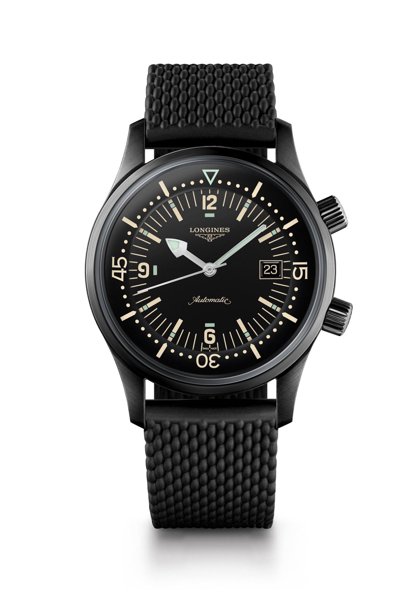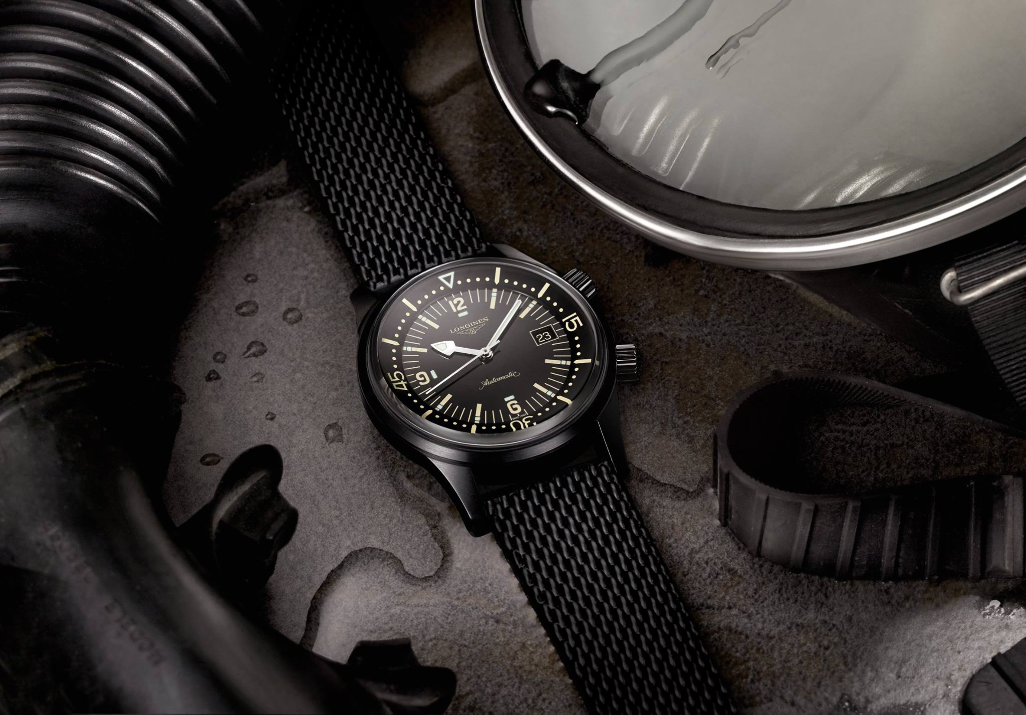 Desde siempre, Longines ha estado vinculado a las numerosas y prestigiosas hazañas de los pioneros que siempre han intentado rebasar sus proezas, en particular en el descubrimiento del mundo submarino. Reinterpretación de un reloj de buceo de 1960, producido en una época en que la exploración marina y el submarinismo militar y deportivo vivieron momentos de gloria, The Longines Legend Diver Watch retoma el estilo audaz que supuso el éxito indiscutible del reloj original. La marca relojera suiza ofrece hoy una versión en negro que alberga el calibre exclusivo L888 de esta pieza emblemática, a la vez deportiva y elegante.