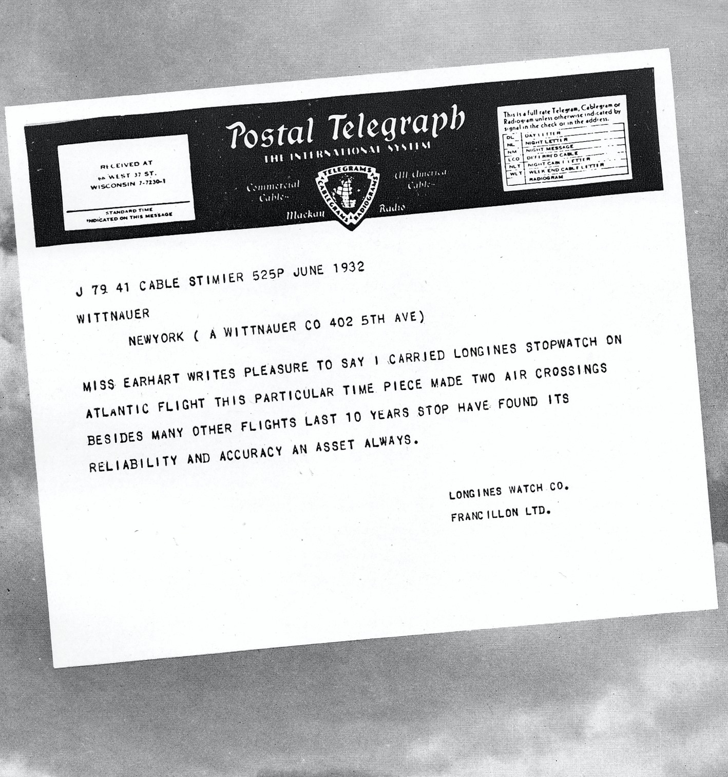 La piloto voló en solitario el Atlántico y lo cruzó en 14 horas y 56 minutos en 1932, siendo la primera mujer en cruzar los continentes. Llevó un cronógrafo Longines en su muñeca.Siempre he dicho que la atracción de volar es como la atracción de la belleza.