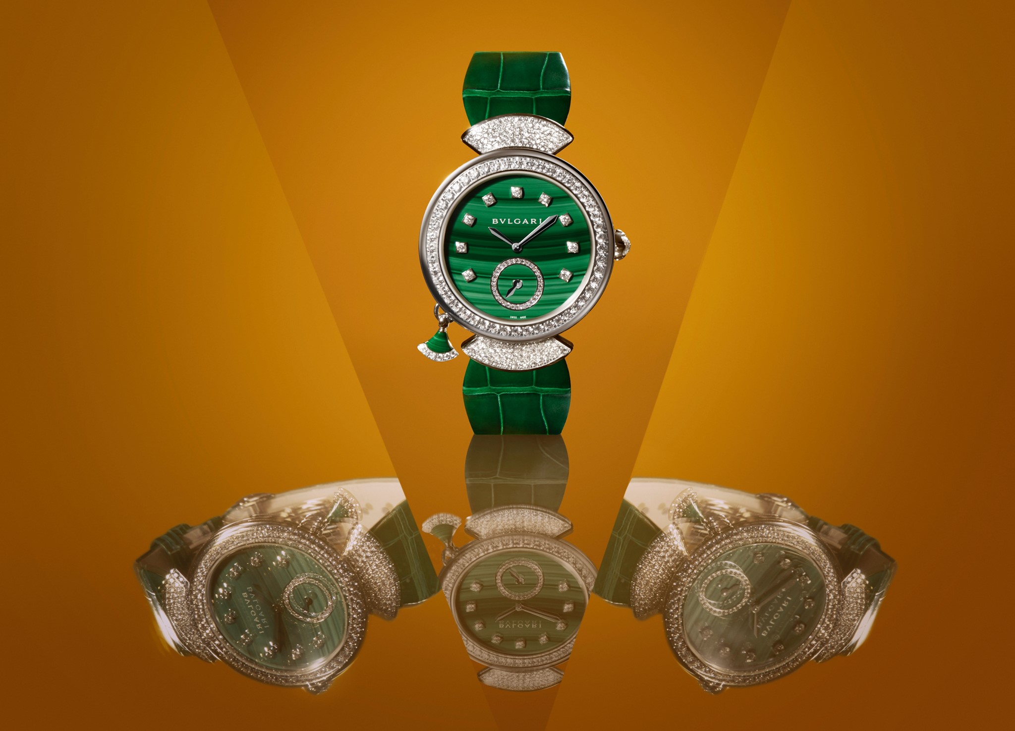 Diva´s Dream es un repetidor de minutos, el más plano del mundo para un reloj femenino, y que ahora añade carátulas Malaquita, Lapislázuli y con plumas reales de pavo real. Cajas de oro blanco o rosa de 18 quilates, todo ello adornando la maravilla mecánica del BVL362 de remonte manual con 42 horas de reserva a 21,600 a/h (información que una coleccionistas entiende y aprecia).