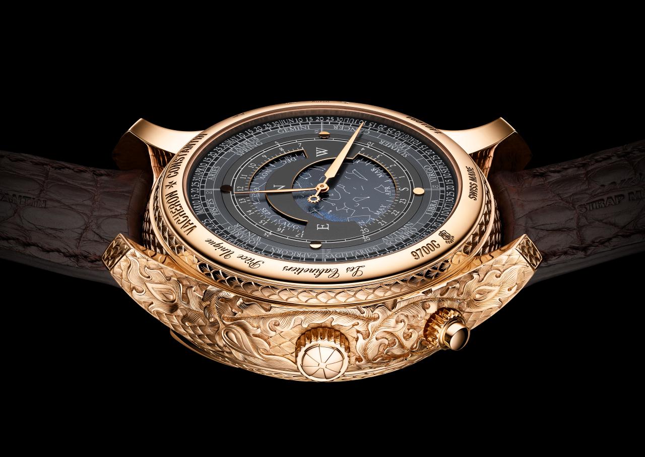 Pieza única desarrollada en caja de oro rosa –de 47 mm / 19.10 mm– emplumada, y que dibuja la leyenda del Ave Fénix por parte de la inspiración de la Maison. Producto de un minucioso trabajo de grabado a mano. Exhibe 15 complicaciones, dentro de las que se cuentan un tourbillon, repetidor de minutos, ecuación del tiempo, estaciones del año y signos zodiacales, una clara muestra de los alcances de Vacheron Constantin.