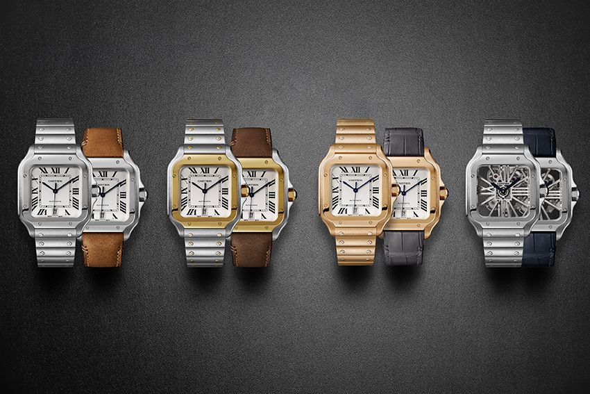 Este año Cartier está de vuelta con otro ícono: el Santos. Si bien este reloj siempre ha estado en la colección, los cambios reemplazan al Santos 100 de 2004. Los rasgos esenciales de esta nueva línea cumplen con dos tallas mediana y grande. Ambas vienen en las mismas opciones de construcción para la caja: acero inoxidable, bitono (acero y oro amarillo), oro rosa y oro amarillo. Sin embargo, la versión grande también está disponible con calibre esqueletado manufactura en oro rosa y acero inoxidable. En general cada uno trabaja gracias al motor 1847 MC, aunque la talla grande se incluye el fechador. Todas las opciones se entregan con una correa Santos a juego y dos diferentes adicionales. Esto se debe a que Cartier ha desarrollado una forma muy práctica de intercambio de correas denominada QuickSwitch con SmartLinks, patentes que permiten al usuario cambiar fácilmente los enlaces sin utilizar una herramienta.