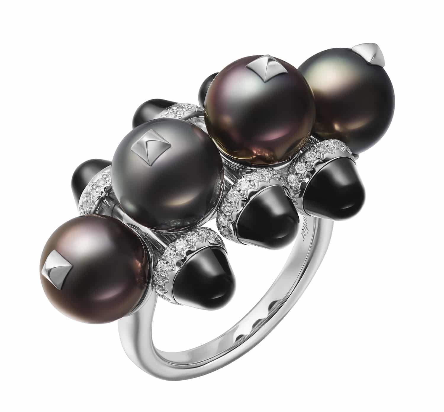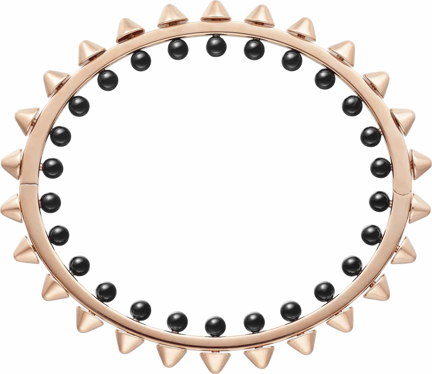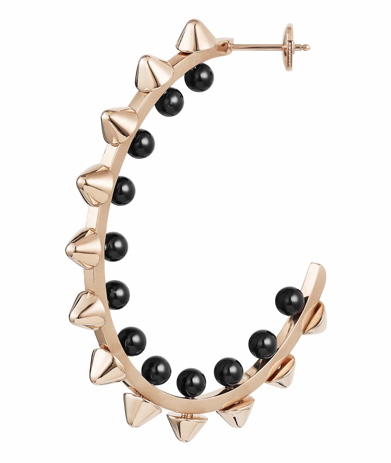 En cuanto a los materiales, Cartier combina el oro rosa con el ónix, y el oro blanco con las perlas de Tahití. El ónix, de apariencia lisa y de un negro profundo, entra en contacto con la piel. Esto es gracias a que se presenta en forma de cuentas en el reverso de las joyas, con superficies sólidas, redondas y móviles que realzan el interior de la pieza, llámese pulsera, colgante, anillo o pendientes de aro de oro rosa.