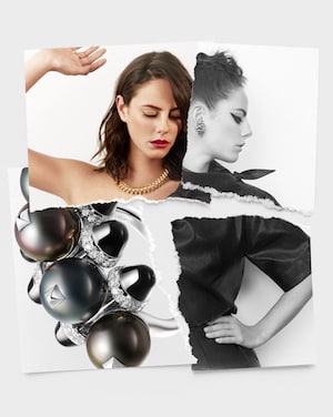 Para hacerlo más interesante, estas joyas pueden adquirir un sentido distinto según el estilo de quien las porta. Ejemplo de ello son los pendientes de aro de ónix o de estilo ear cuff de perlas de Tahití, para el lóbulo de la oreja.