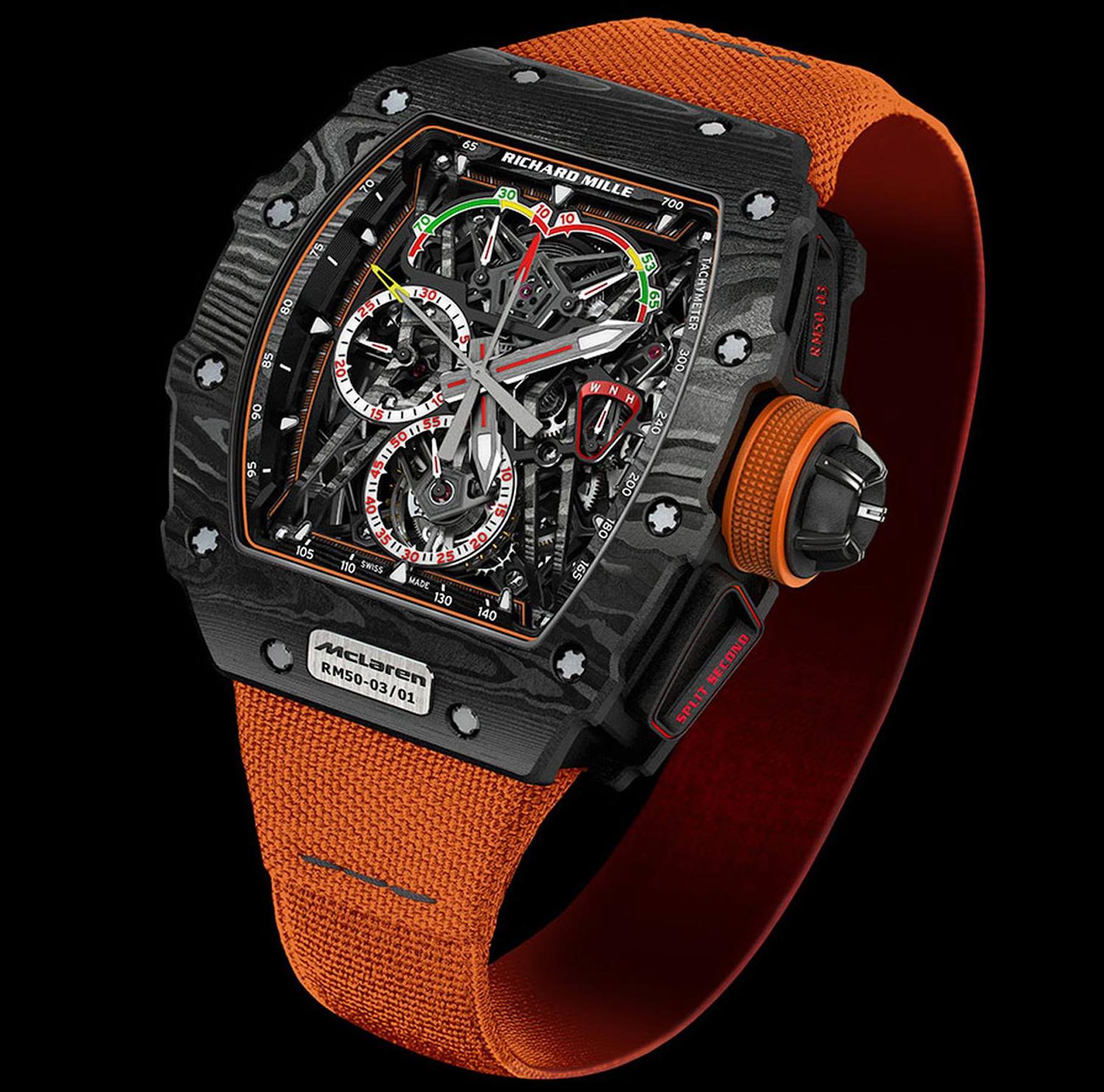 Richard Mille y McLaren Automotive se asociaron hace algunos años, pero éste es el primer reloj que han producido en conjunto. Tanto que es el que ha portado Odell Beckham Jr y ha sido tan criticado. Producto de un trabajo en equipo entre diseñadores e ingenieros de Richard Mille y McLaren, la pieza está limitada a solo 500 relojes en todo el mundo, y a un precio de 191,500 dólares. El reloj estará disponible inicialmente para los clientes de la serie McLaren Ultimate. Es decir, si usted compra el auto, obtendrá los primeros números de serie para el reloj. Técnicamente, anexa el calibre automático RMAC3, presentado por vez primera hace un par de años. Se trata de un cronógrafo automático con flyback y reserva de marcha de 55 horas. Y la caja, luce un desarrollo de carbón TPT entrelazada con tecnología Orange Quartz, es decir, un método que emplea finas capas de fibra de carbono y fibra de silicio color naranja. Visita.