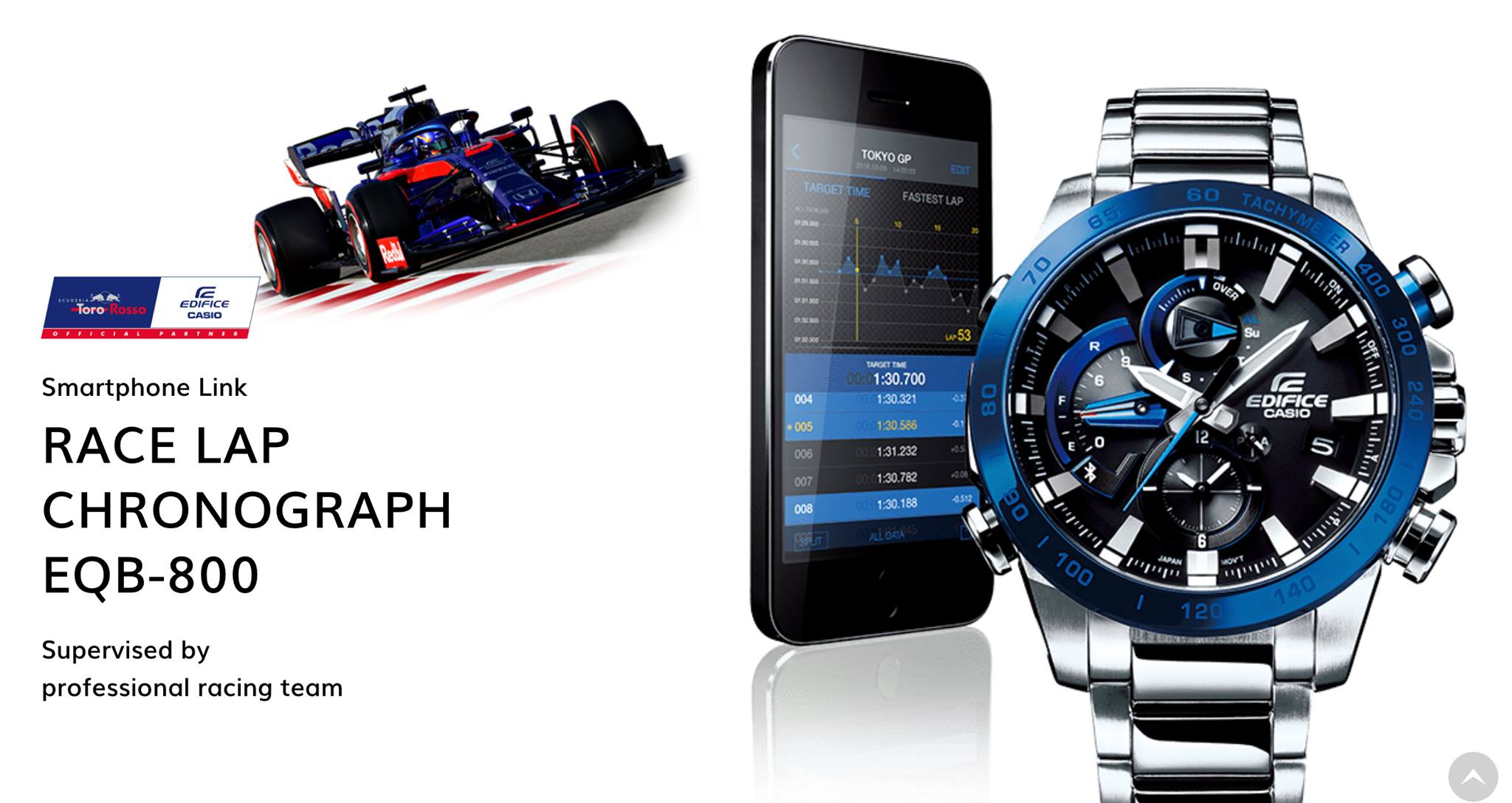En algún momento la marca estuvo ligada a Red Bull también. Ahora sólo están conectados con el equipo de desarrollo. Sin embargo, el bólido y la colaboración ya son unas de las más longevas de la lista. Edifice es, básicamente, una línea tecnológica y de lujo dentro de Casio. Y por ello se presenta la nueva versión del smartwatch EQB-800, que presenta funciones para Apple y Android. Visita.