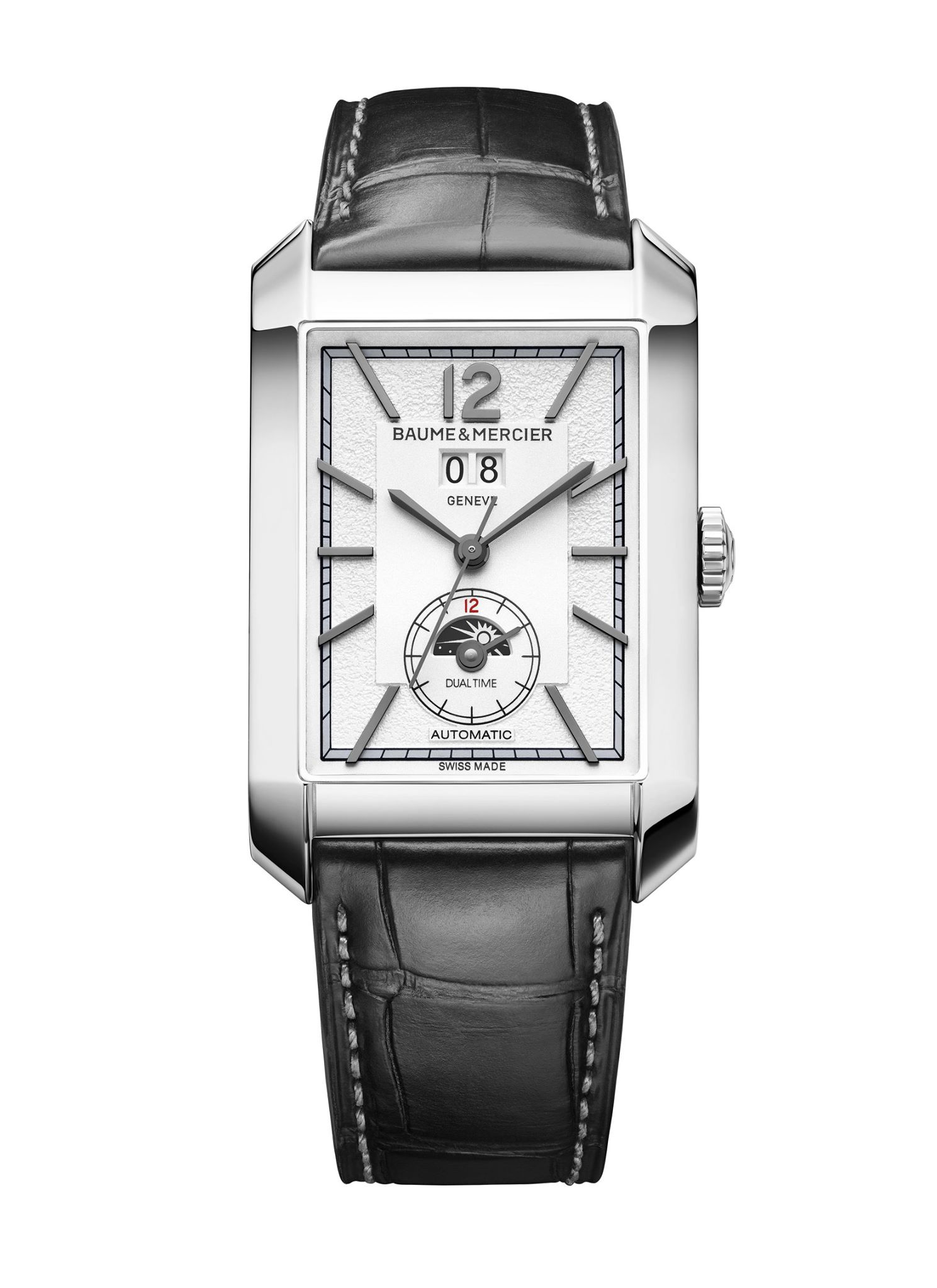 Las dimensiones son de 31 mm de largo por 48 mm, una talla bastante grande, incluso más que Santos de Cartier XL y All Black. La carátula muestra la gran fecha debajo de las 12, mientras la indicación de segundo huso horario y día noche aparecen a las 6 horas.