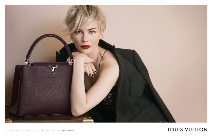 Durante la temporada de Otoño/Invierno una nueva campaña publicitaria será dada a conocer, ésta exhibe el trabajo fotográfico del prestigioso artista alemán Peter Lindbergh, y a una musa que profesa a la perfección el ADN de LV: Michelle Williams.